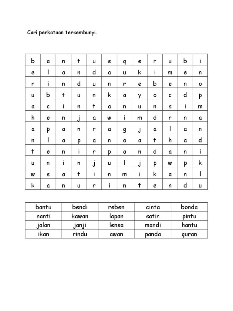 ١٣ ذو القعدة ١٤٣١ هـ. Bahasa melayu suku kata kvkkv cari padanan. Temukan kata yang tersembunyi carian perkataan. Modul mencari perkataan tersembunyi ni sesuai untuk prasekolah dan tahap 1 sebagai bahan bantu mengajar untuk mengeja sesuatu perkataan. Sejak beberapa tahun lalu, ada individu yang telah memuatnaik pattern puzzle, dan cabarannya adalah anda perlu cari benda tersembunyi di dalam gambar yang .